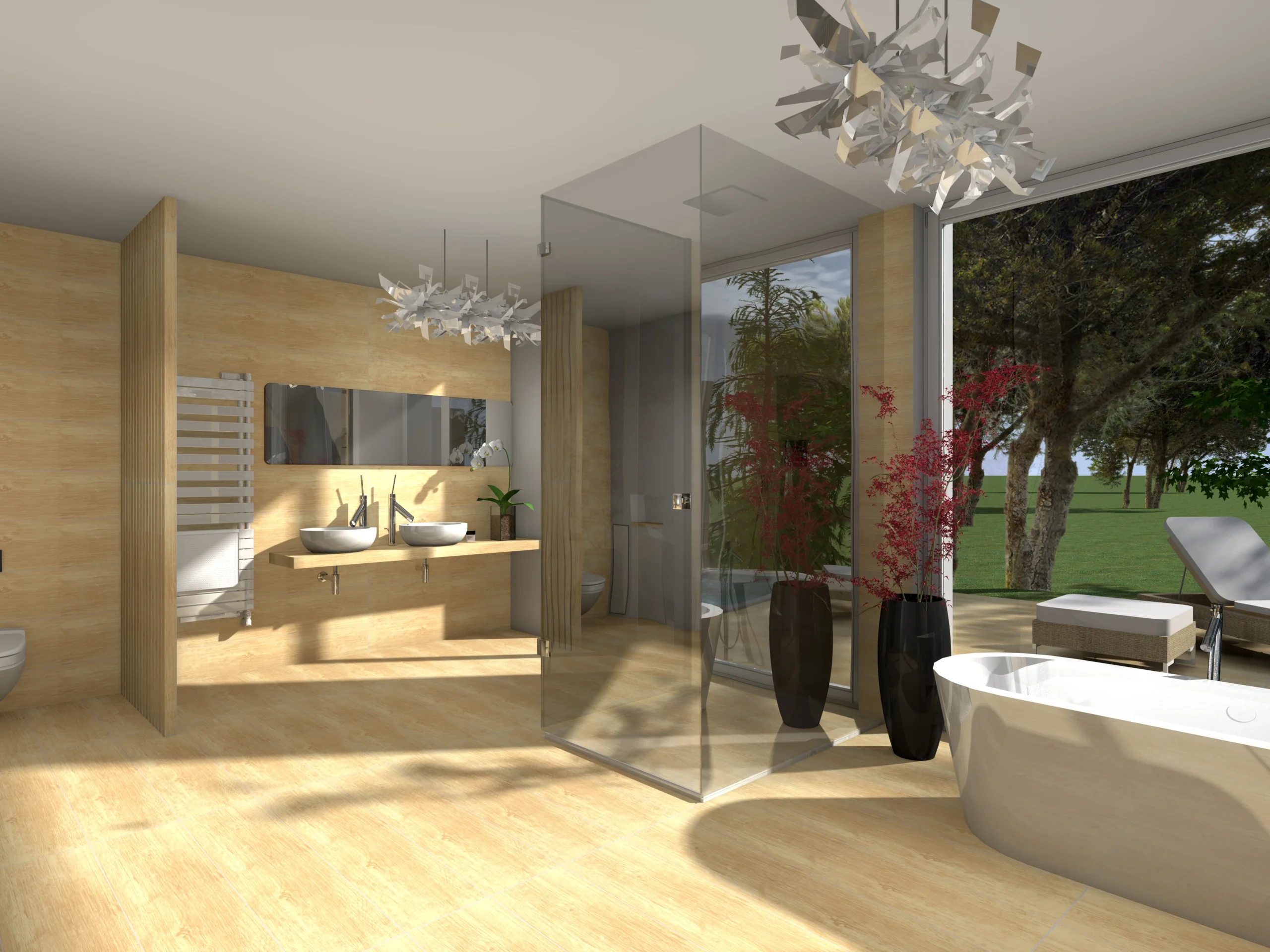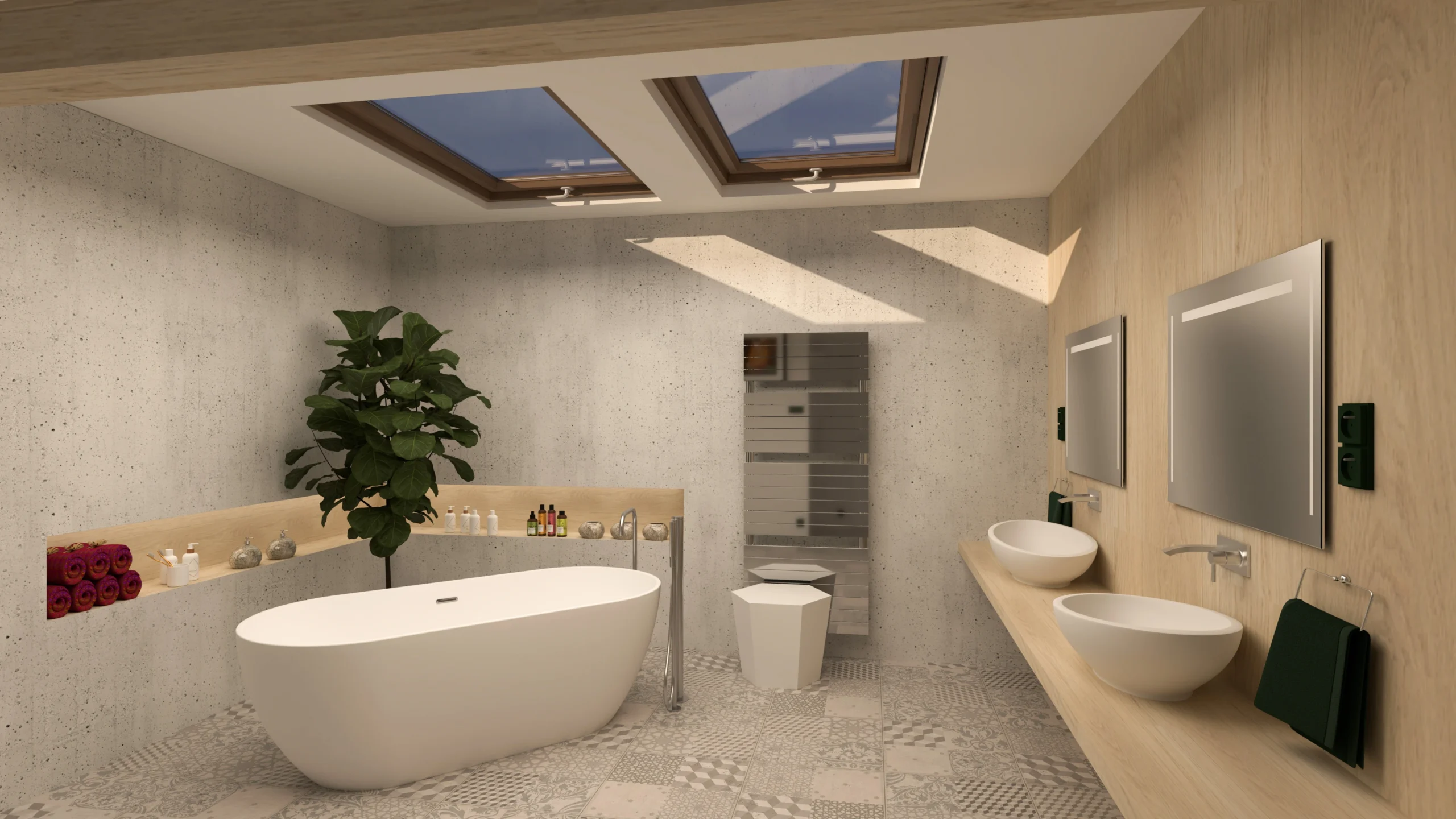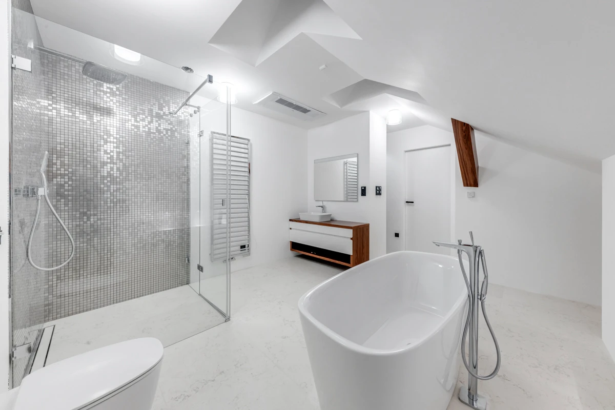 Navrhujeme koupelny, které spojují funkčnost, moderní design a kvalitní materiály. Důraz klademe na promyšlené dispoziční řešení, správné osvětlení i výběr prvků, které vytvářejí harmonický a příjemný prostor pro každodenní péči i odpočinek.